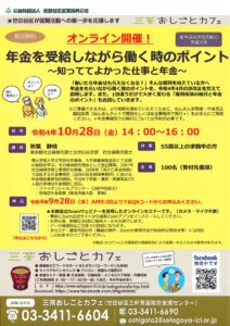 • 【おしごとカフェ】年金を受給しながら働くときのポイント