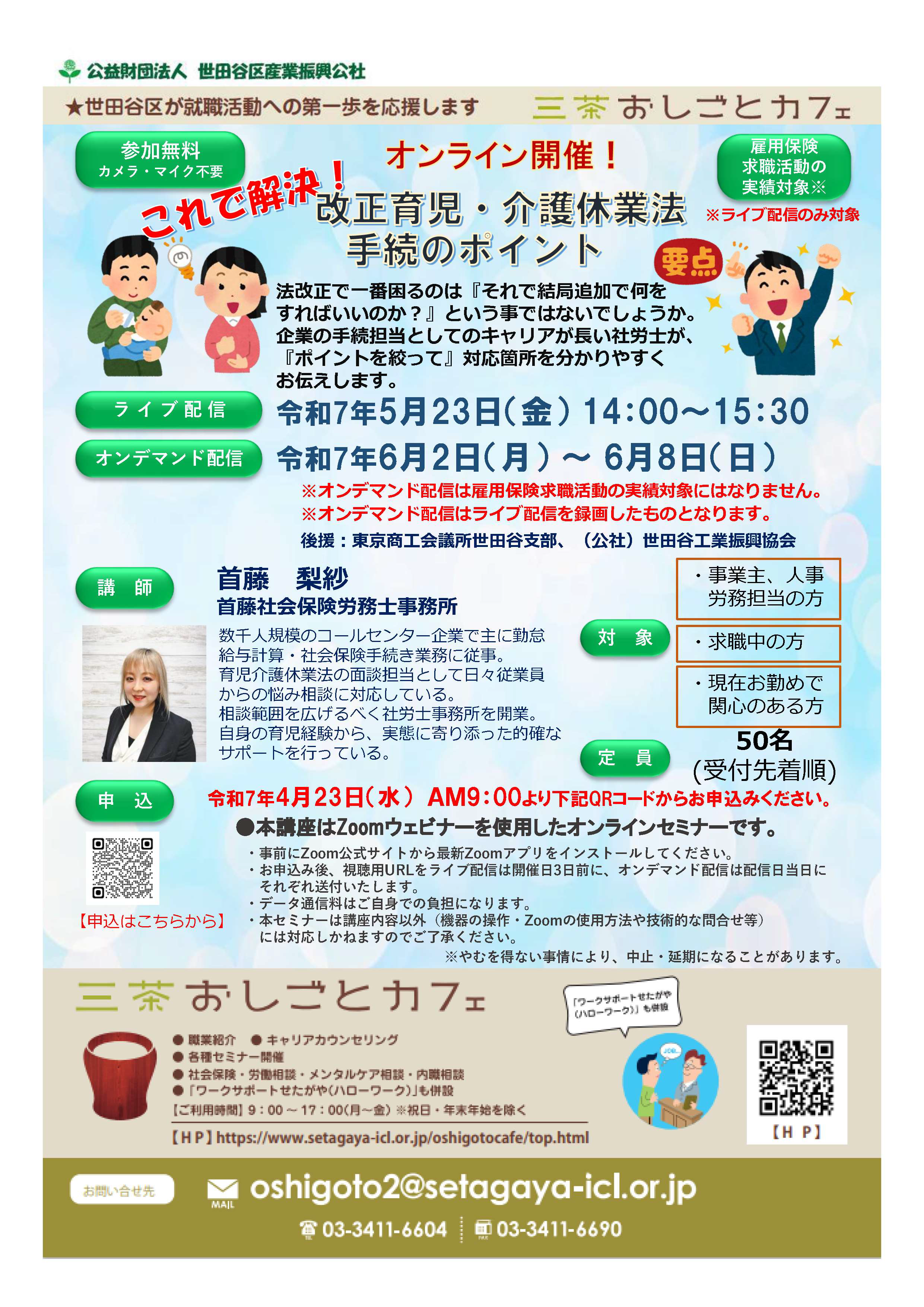 東京都社会保険労務士会 世田谷支部 > 行事報告(開催済み、募集終了) > これで解決!改正育児・介護休業法 手続のポイント (オンライン開催 オンデマンド配信あり)